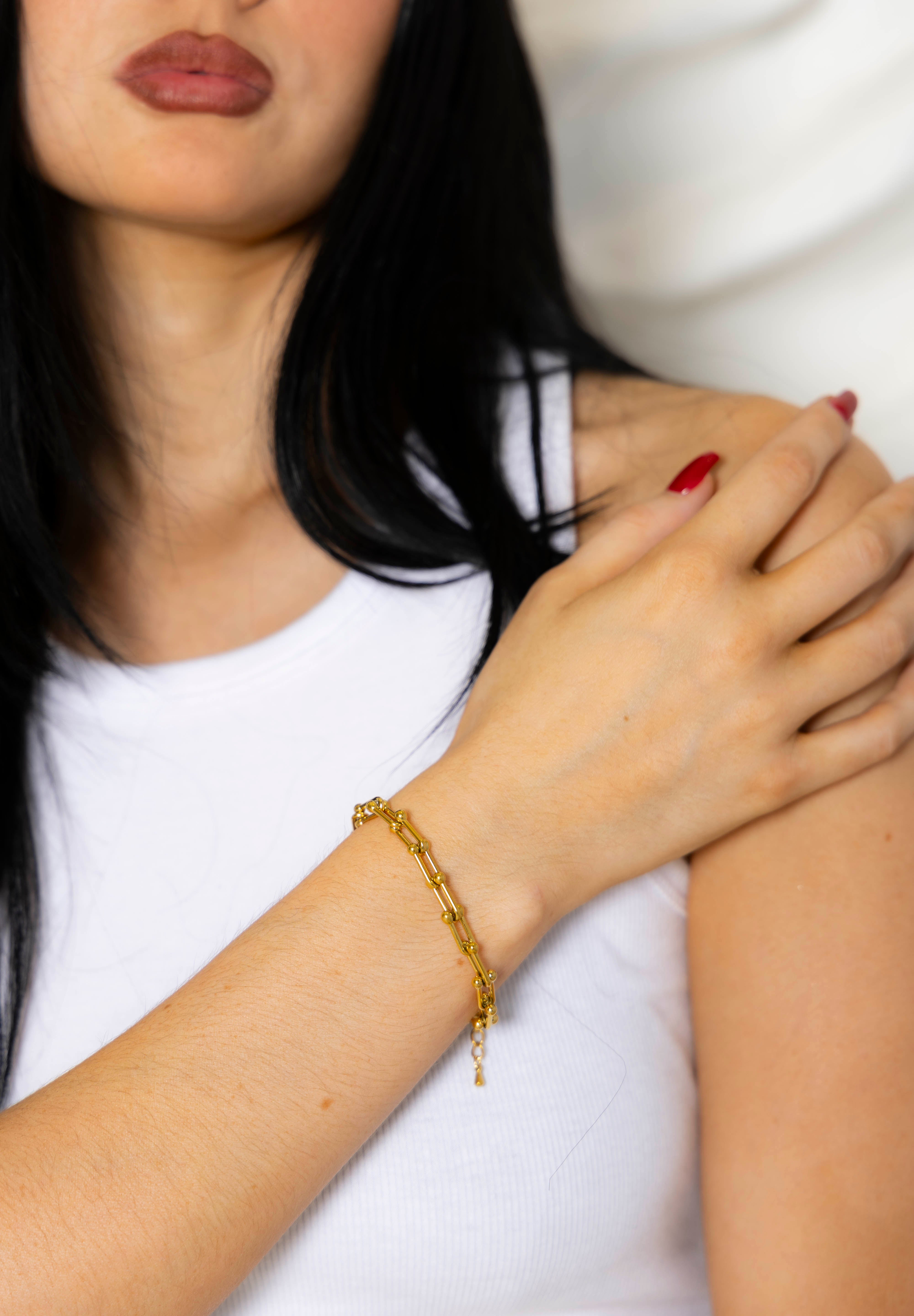 The Orion Link Bracelet features a modern twist on the classic chain design. Durable, waterproof, and perfect for layering or wearing solo, this bracelet is designed for those who love effortless luxury with an edge.