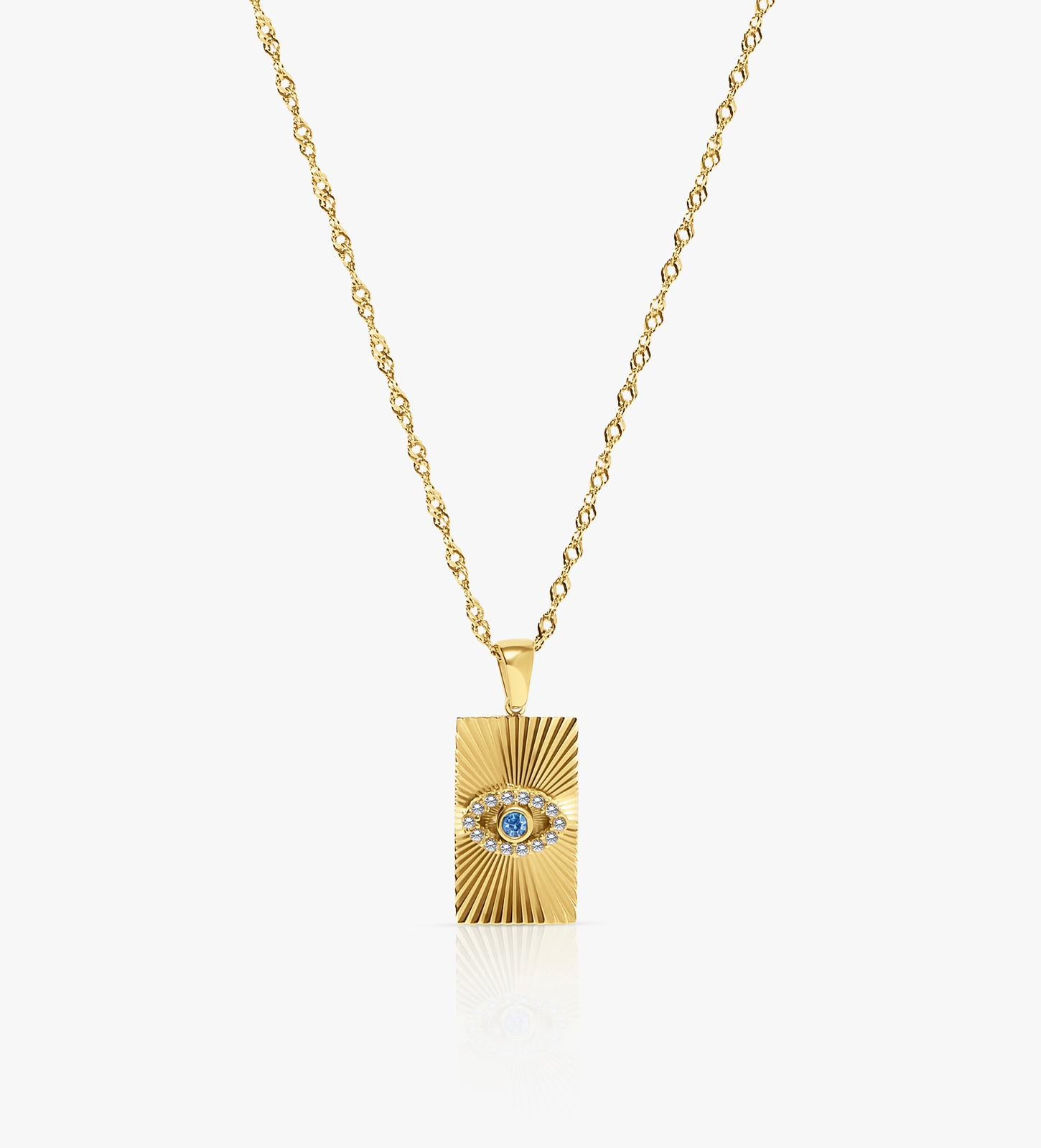 The eye design is both trendy and protective, making it a stylish statement piece that can be worn alone or layered with other necklaces.