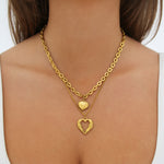 The Amour Necklace carries two hearts with two meanings. One heart is textured to reflect strength and resilience, while the other is open, wrapped in delicate wings that symbolise love and protection. This one piece double chain necklace tells a story of balance- tough yet tender, bold yet soft. This layered piece makes a beautiful statement on its own or paired with your everyday favourites.
