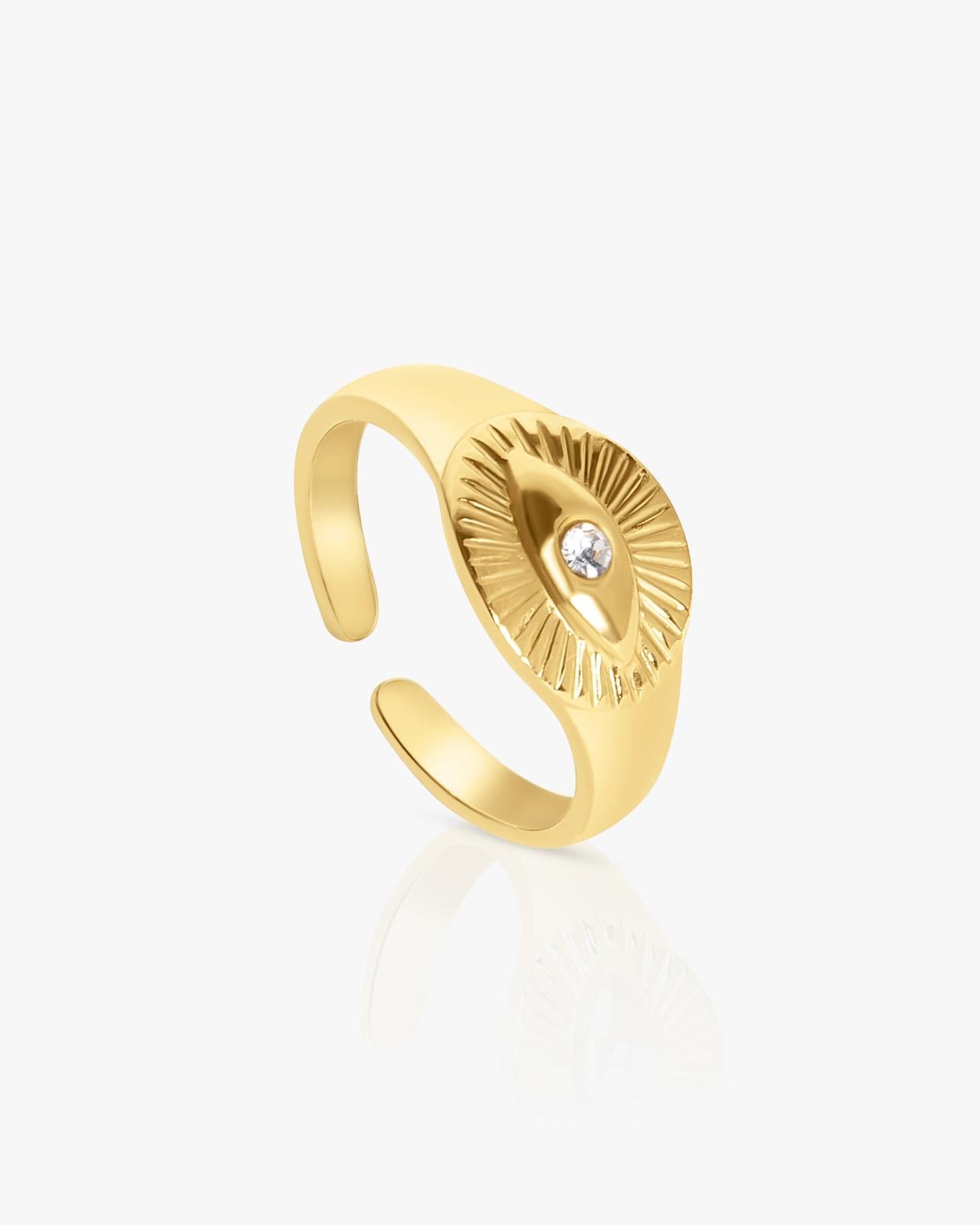 The Cleo Ring is a delicate and stylish piece that combines elegance with a touch of mystique, It features a minimalist eye design that is both modern and timeless. At the center, a shimmering stone adds a subtle sparkle, enhancing the ring’s unique appeal. Its sleek design makes it perfect for stacking with other rings or wearing alone for a refined look. Ideal for everyday wear.