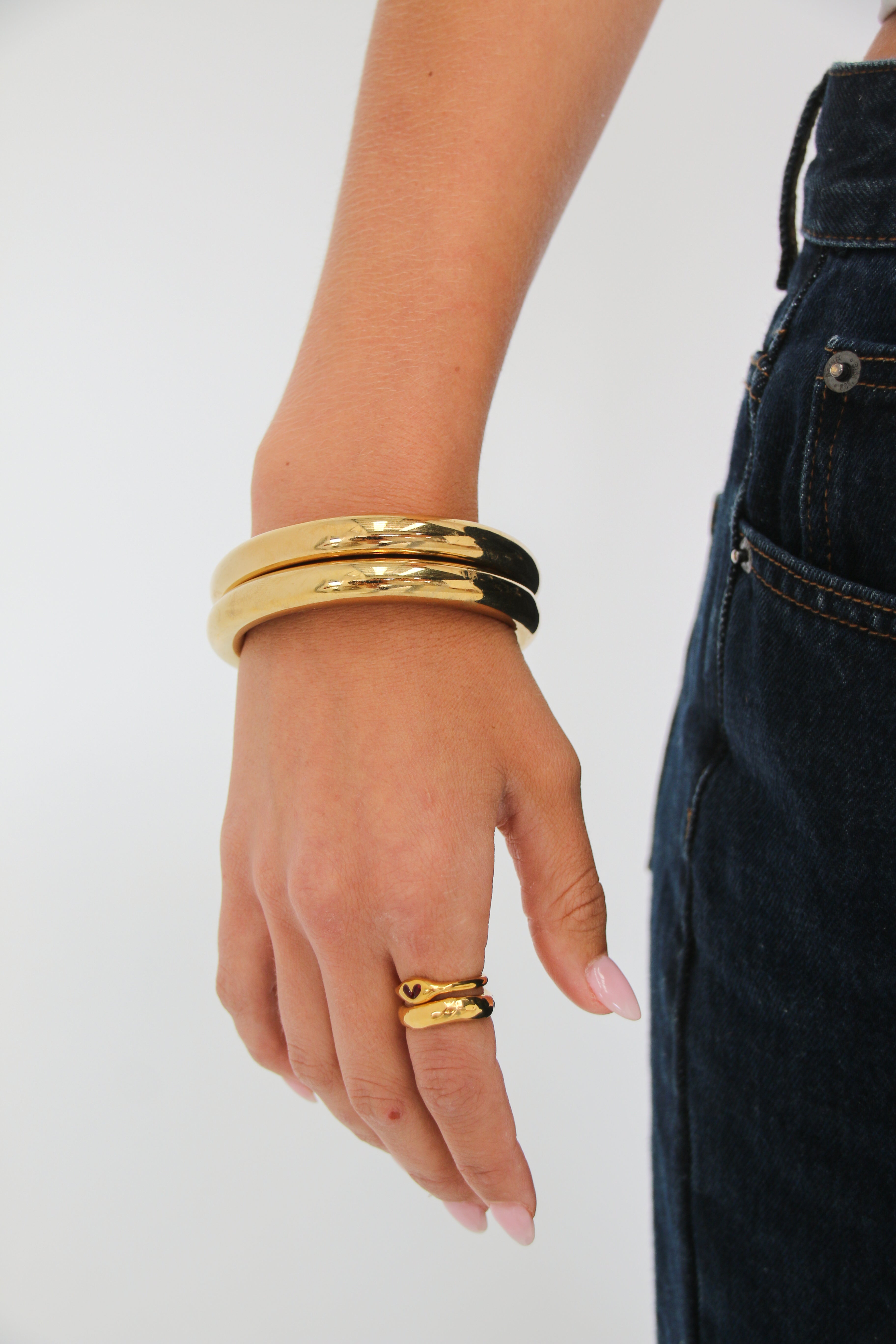 Sleek, polished, and endlessly versatile, the Eclipse Bangle is a piece you’ll reach for again and again. Giving you a bold oversized look. Whether you wear them alone as a statement or stacked for a more layered look, these bangles bring effortless style with a modern touch.