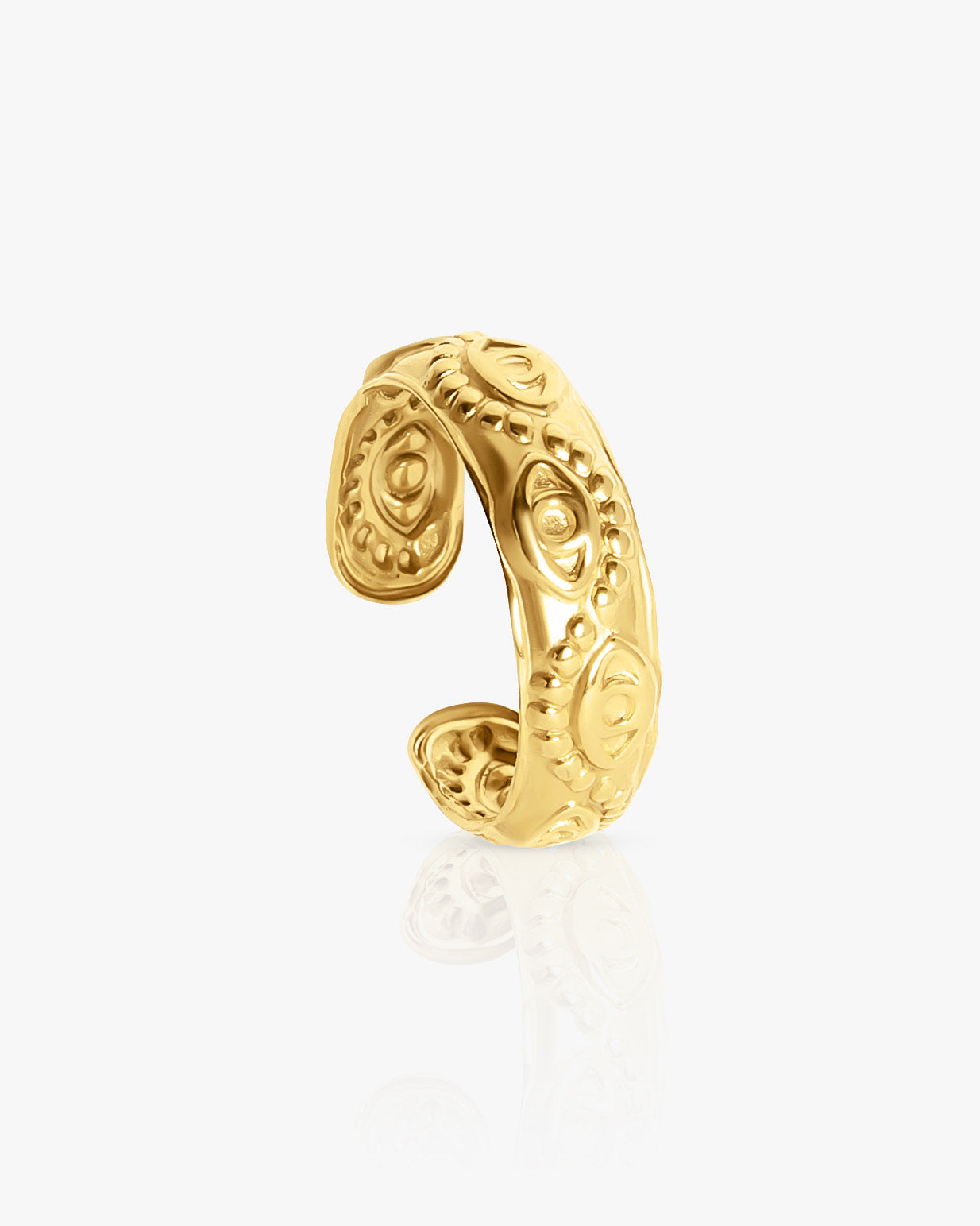 The Luna Ring is a vintage multi-eye ring that beautifully blends unique design with a touch of whimsy. This ring features a captivating arrangement of multiple eye motifs, each intricately detailed to create a stunning visual impact. The vintage-inspired design evokes a sense of charm and mystery, making it a standout accessory for any jewelry collection. Perfect for layering with other rings or wearing alone as a statement piece.